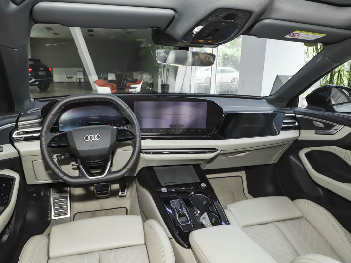 进入车内,一汽奥迪A5L中控台配备3块显示屏,包含11.9英寸的奥迪虚拟驾驶舱(液晶仪表屏)、14.5英寸中控MMI触摸显示屏、副驾10.9英寸娱乐屏。新车还提供13.1英寸浮影W-HUD,可以展示路径规划、路况信息和车辆状态等。根据版本不同,新车还提供上下平底式多功能方向盘、圆形外轮廓四辐式多功能方向盘,部分车型支持方向盘加热、离手监测等功能。常规后备箱容积480L(上汽版)/452L(一汽版),放倒座椅后可扩展至1320L,实测容纳28寸行李箱+婴儿车+露营装备。